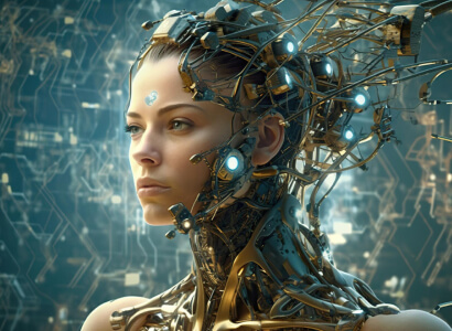 Woman's face wearing a futuristic